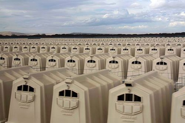 La cuccia di quel vitellino è uguale a queste qui sotto, fotografate negli Stati Uniti in un allevamento intensivo.