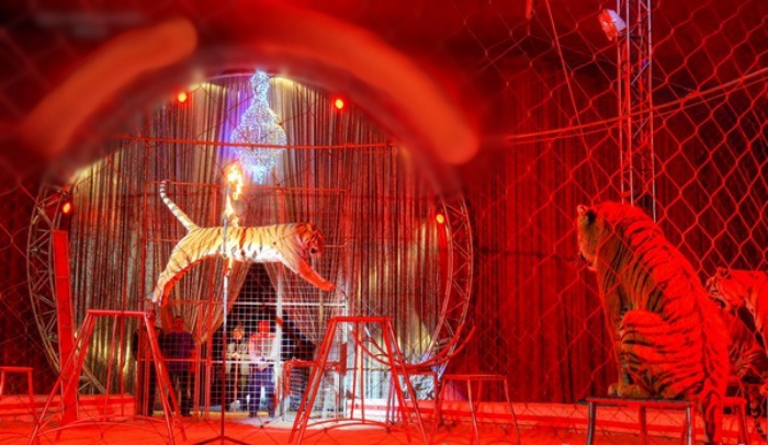 Nel 2015 l’esibizione della tigre che salta nel cerchio di fuoco è stata documentata dalla LAV in un circo italiano, in tournee nel nostro Paese. Articoli pubblicati da siti internet sul mondo circense, nel periodo 2015-2016 pubblicano proprio le foto di un esercizio con una tigre costretta ad esibirsi in questa discutibile acrobazia.