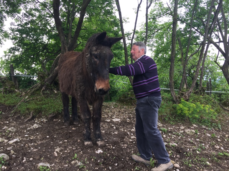 Orio, che mi segue affettuoso, è un ragazzone di 700 chili. Lui e i compagni sono alcuni degli ultimi muli in circolazione perché ormai questo tenace, resistente, frugale, paziente equino non serve quasi più ed è sempre più raro.