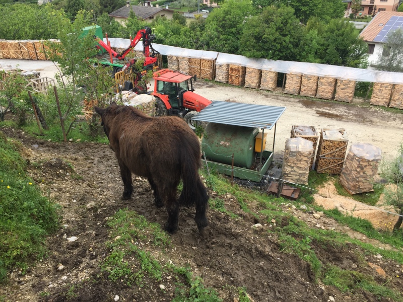 Mi guarda Iroso, pensieroso e silente. Sta al riparo dalla pioggia di questo maggio impossibile che a lui, come ai suoi compagni, non dà alcun fastidio. Anzi. Il fango che accumula sulla sua vecchia pellaccia, dopo le rotolate sulla terra amica, lo fanno fremere di felicità.