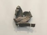 Un piccolo falco di bronzo. Nella mitologia greco-romana, il falco era il messaggero di Apollo e l’uccello sacro alla maga Circe.